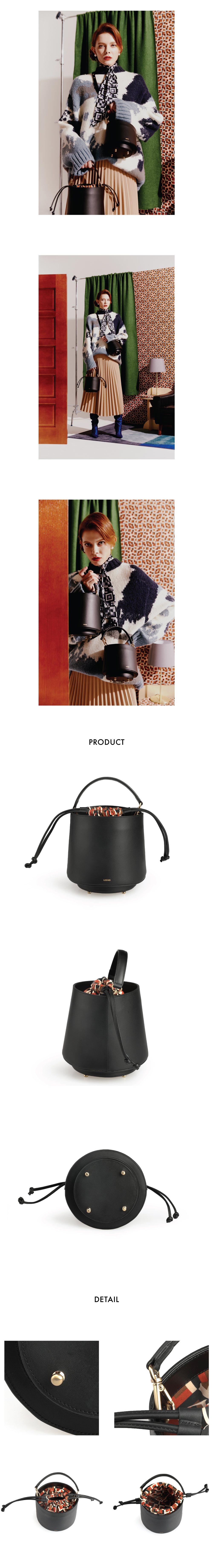 스탠드 조명의 라인으로 만들어진 버킷백입니다.