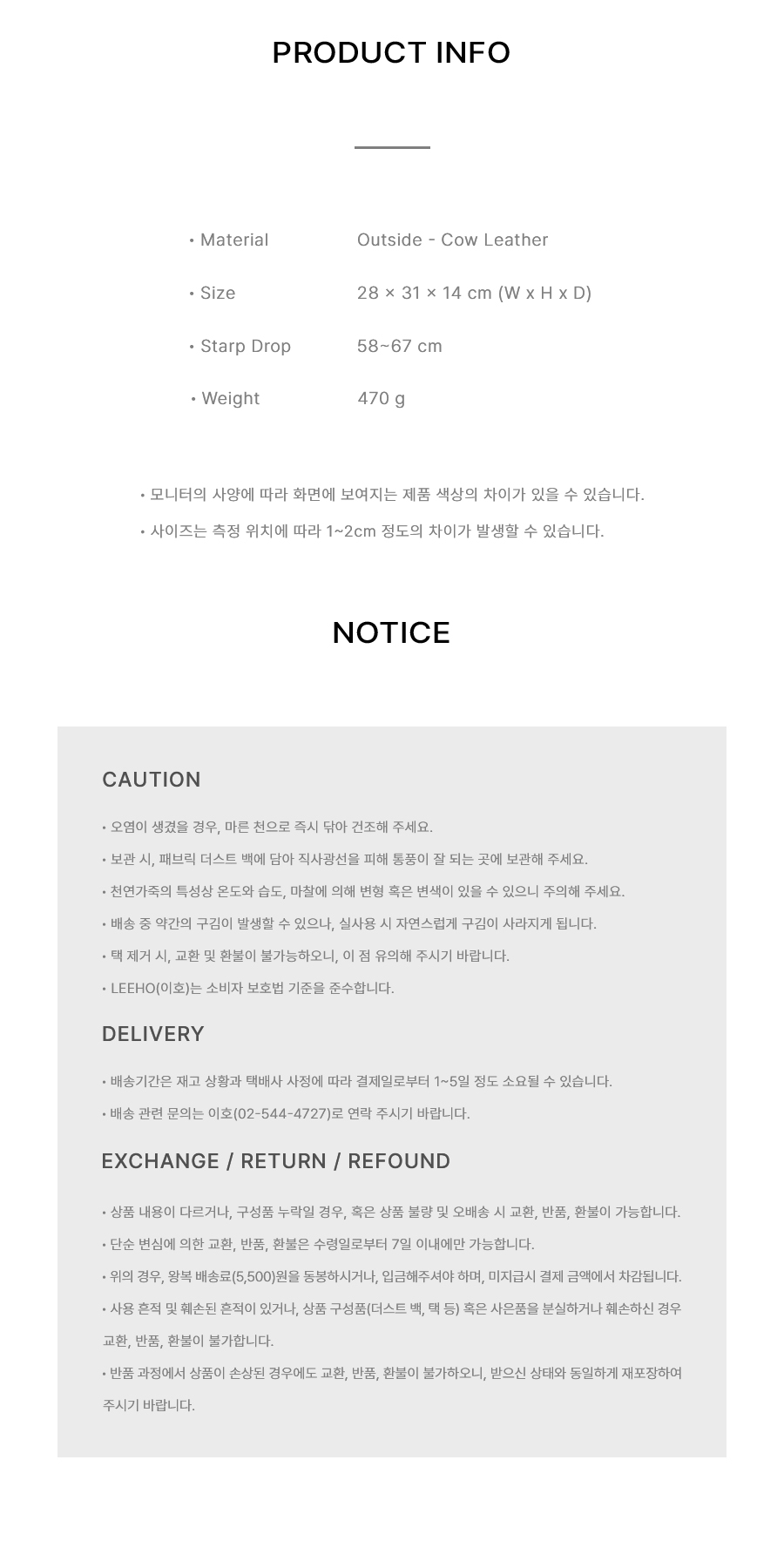 스트랩은 여밈과 숄더의 역할과 함께, 길이 조절이 가능하도록 솔트레지로 제작하였습니다. 내부에 지퍼포켓이 있어 실용적으로 사용이 가능합니다.