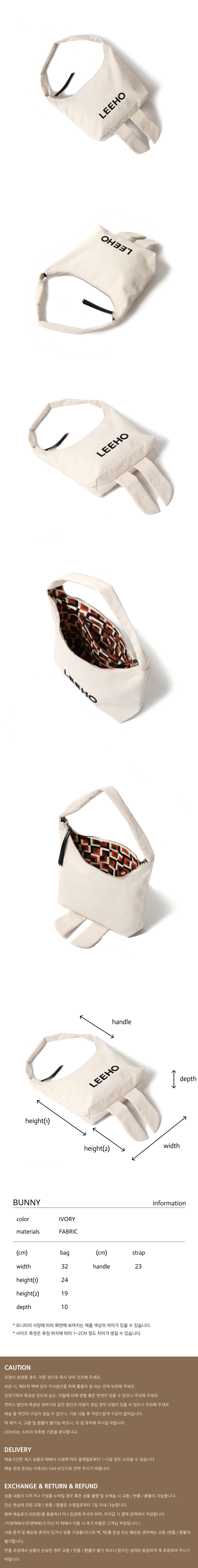 전면의 “LEEHO” 로고 자수를 포인트를 사용한 캔버스 호보백 입니다.